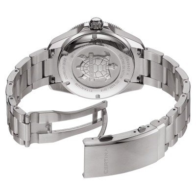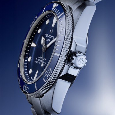 Cette montre Certina a un boîtier Titane 40.5 mm en diamètre et est équipée d'un bracelet Titane. Le boîtier contient un mouvement ETA et la montre est dotée d'un cristal Saphir antireflet unique..