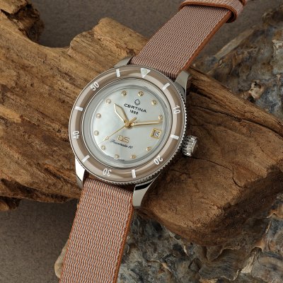 Les montres DS PH s'inspirent des légendaires montres de plongée Certina des années 1960. La montre est équipée d'un mouvement Powermatic 80 doté d'une remarquable réserve de marche de 80 heures. Cette version de 39 mm séduira les sportives avec son élégant et souple bracelet ceinture de sécurité et son cadran en nacre avec 11 index diamants entourés d'une lunette en céramique blanche. Conçue pour les femmes à la recherche d'une montre à la fois élégante et robuste, cette montre se distingue par son design soigné et sa technologie éprouvée.