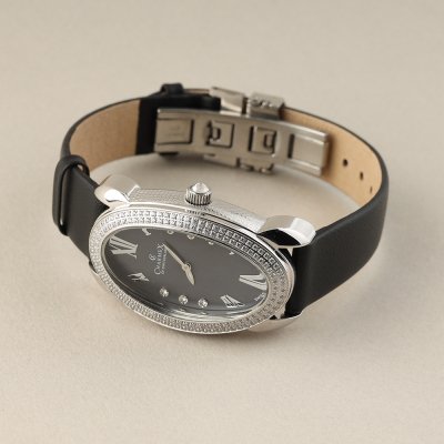 Cette montre Charmex of Switzerland a un boîtier Inox 28 mm en diamètre et est équipée d'un bracelet Cuir satiné. Le boîtier contient un mouvement Ronda et la montre est dotée d'un cristal Saphire..