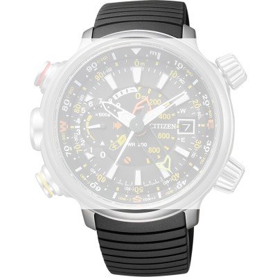 Ce bracelet de montre Citizenest fait de silicone et est attaché à la montre au moyen de Épingles à ressort. Le bracelet a une taille de 22 mm et se ferme au moyen d'un boucle. Le bracelet n'a pas de support droit, ce qui signifie que ce bracelet convient uniquement aux montres énumérées ci-dessous.