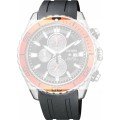 Ce bracelet de montre Citizenest fait de silicone et est attaché à la montre au moyen de Épingles à ressort. Le bracelet a une taille de 22 mm et se ferme au moyen d'un boucle. Le bracelet n'a pas de support droit, ce qui signifie que ce bracelet convient uniquement aux montres énumérées ci-dessous.