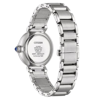 Cette montre Citizen a un boîtier Inox 29.5 mm en diamètre et est équipée d'un bracelet Inox. Le boîtier contient un mouvement Citizen et la montre est dotée d'un cristal Saphire..