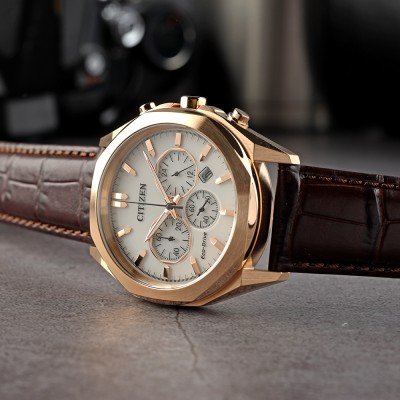 Cette montre Citizen a un boîtier Inox 41 mm en diamètre et est équipée d'un bracelet cuir. Le boîtier contient un mouvement Citizen et la montre est dotée d'un cristal Minéral..