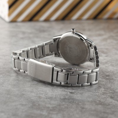 Cette montre Citizen a un boîtier Inox 29.3 mm en diamètre et est équipée d'un bracelet Inox. Le boîtier contient un mouvement Citizen et la montre est dotée d'un cristal Saphire..