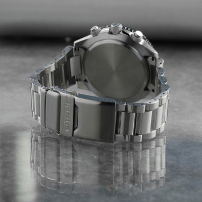Cette montre Citizen a un boîtier Inox 45.9 mm en diamètre et est équipée d'un bracelet Inox. Le boîtier contient un mouvement Citizen et la montre est dotée d'un cristal Saphire..