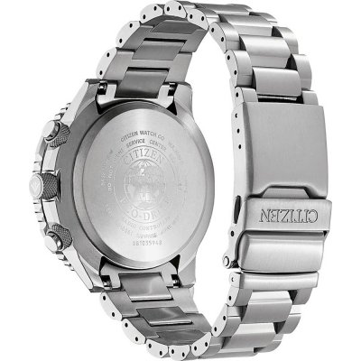 Cette montre Citizen a un boîtier Inox 47 mm en diamètre et est équipée d'un bracelet Inox. Le boîtier contient un mouvement Citizen et la montre est dotée d'un cristal Saphire..
