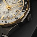 Cette montre mécanique GMT limitée à 1600 exemplaires fait partie de la très prisée Citizen Series 8. Elle est équipée d'un mouvement calibre 9054, d'un affichage 24 heures, d'une aiguille GMT, d'une fonction date et d'une protection anti-magnétique. Avec une étanchéité jusqu'à 10 bars, une réserve de marche de 50 heures et une précision de -10/+20 secondes par jour, cette montre de la série 8 impressionne par sa fonctionnalité et son élégance. Le boîtier en acier inoxydable gris foncé avec verre saphir antireflet, la lunette 24 heures et le cadran dégradé structuré offrent non seulement de la robustesse, mais aussi du style. Il s'agit d'une montre sérieuse, dotée d'un haut degré de fonctionnalité et d'élégance, qui convient aussi bien à un environnement professionnel qu'à un environnement décontracté.