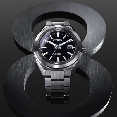 Le chiffre 8 tourné sur le côté symbolise, chez Citizen, l'artisanat et le lien sans fin entre la montre et le porteur. Les montres de la série 8 sont équipées des propres mouvements automatiques de Citizen qui offrent une résistance magnétique améliorée qui sont nettement plus minces que les mouvements comparables.
