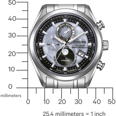 Cette montre Citizen a un boîtier Super Titane 43 mm en diamètre et est équipée d'un bracelet Super Titane. Le boîtier contient un mouvement Citizen et la montre est dotée d'un cristal Saphire..