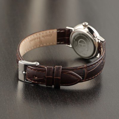 Cette montre Claude Bernard a un boîtier Inox 27 mm en diamètre et est équipée d'un bracelet cuir. Le boîtier contient un mouvement Ronda et la montre est dotée d'un cristal Saphire..