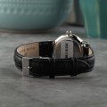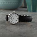 Cette montre Claude Bernard a un boîtier Inox 27 mm en diamètre et est équipée d'un bracelet cuir. Le boîtier contient un mouvement Ronda et la montre est dotée d'un cristal Saphire..