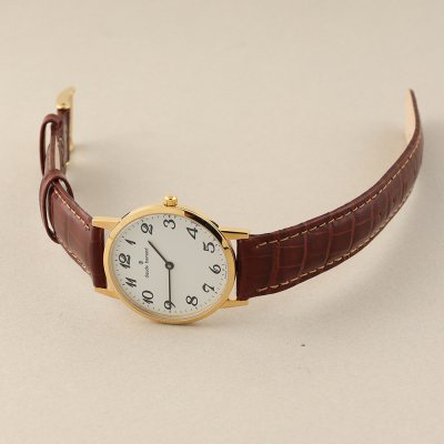 Cette montre Claude Bernard a un boîtier Inox 33 mm en diamètre et est équipée d'un bracelet cuir. Le boîtier contient un mouvement Ronda et la montre est dotée d'un cristal Minéral..