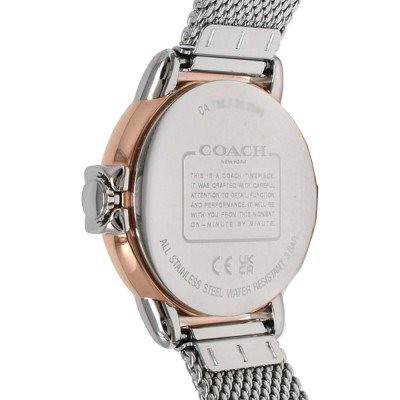 Cette montre Coach a un boîtier Inox 28 mm en diamètre et est équipée d'un bracelet Inox. Le boîtier contient un mouvement Seiko et la montre est dotée d'un cristal Minéral..