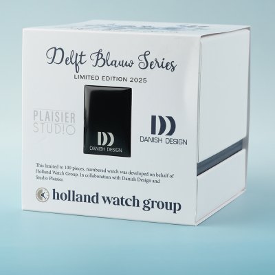 Inspiré par les Delftware, en collaboration avec Studio Plaisier et Danish Design, Holland Watch Group a créé une montre de style hollandais - ou plutôt trois montres - qui représentent notre tradition dans une clé moderne avec un cadeau supplémentaire : un collier avec pendentif en céramique, fait à la main par des artisans pour cette édition limitée.