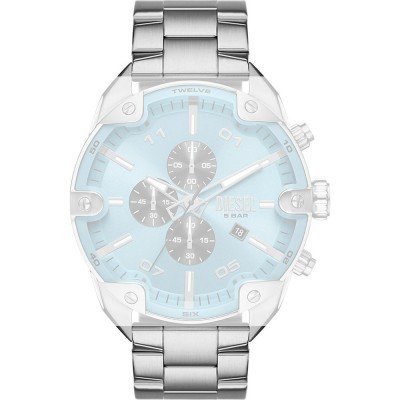 Ce bracelet de montre Dieselest fait de acier inoxydable et est attaché à la montre au moyen de Épingles à ressort. Le bracelet a une taille de 24 mm et se ferme au moyen d'un boucle déployante avec boutons poussoirs. Le bracelet est doté d'une monture droite, ce qui signifie qu'il convient à toutes les montres de la Diesel dotées d'une monture droite..