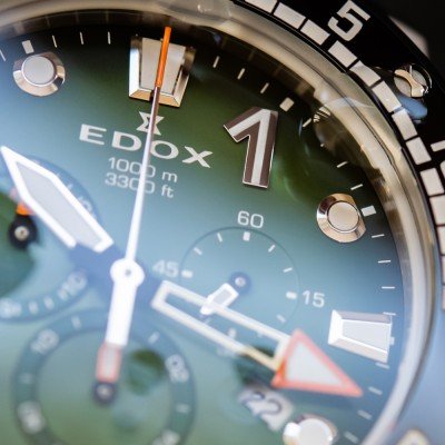 Cette montre de plongée Edox est un vrai classique. La lunette tournante qui permet de mesurer des intervalles de temps allant jusqu'à 60 minutes, donne à la montre son caractère Edox classique, ainsi que les trois aiguilles du chronographe. Le boîtier est scellé au moyen d'un couvercle vissé. La couronne est également vissée, assurant un haut degré d'étanchéité. Les index et les aiguilles sont recouverts d'un revêtement Super-LumiNova rendant la montre facilement lisible même dans les endroits sombres. De plus, la montre a une valve à hélium. Cela protège contre la surpression, de sorte que la montre peut être utilisée sous haute pression, par exemple lorsqu'elle est portée sous l'eau pendant une longue période.