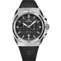 Cette montre Edox a un boîtier Inox 43 mm en diamètre et est équipée d'un bracelet caoutchouc. Le boîtier contient un mouvement Ronda et la montre est dotée d'un cristal Saphire..