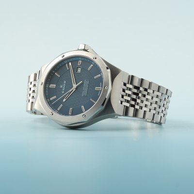 Cette montre Edox a un boîtier Inox 43 mm en diamètre et est équipée d'un bracelet métal. Le boîtier contient un mouvement Ronda et la montre est dotée d'un cristal Saphire..