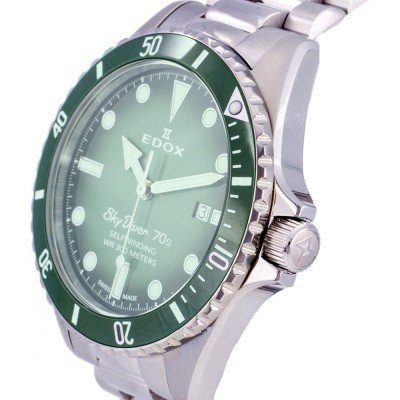 Cette montre Edox a un boîtier Inox 42 mm en diamètre et est équipée d'un bracelet Inox. Le boîtier contient un mouvement ETA et la montre est dotée d'un cristal Saphire..