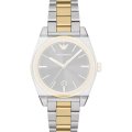 Ce bracelet de montre Emporio Armaniest fait de acier inoxydable et est attaché à la montre au moyen de Épingles à ressort. Le bracelet a une taille de 20 mm et se ferme au moyen d'un boucle papillon avec boutons poussoirs. Le bracelet n'a pas de support droit, ce qui signifie que ce bracelet convient uniquement aux montres énumérées ci-dessous.