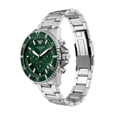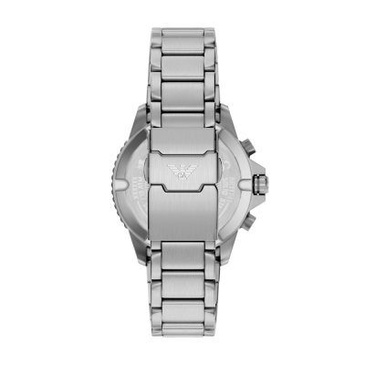 Cette montre Emporio Armani a un boîtier Inox 43 mm en diamètre et est équipée d'un bracelet Inox. Le boîtier contient un mouvement Seiko et la montre est dotée d'un cristal Minéral..