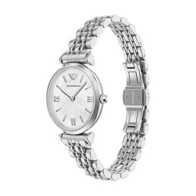 Cette montre Emporio Armani a un boîtier Inox 28 mm en diamètre et est équipée d'un bracelet Inox. Le boîtier contient un mouvement Seiko Instruments Inc. et la montre est dotée d'un cristal Minéral..
