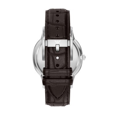 Cette montre Emporio Armani a un boîtier Inox 43 mm en diamètre et est équipée d'un bracelet cuir. Le boîtier contient un mouvement Seiko Instruments Inc. et la montre est dotée d'un cristal Minéral..