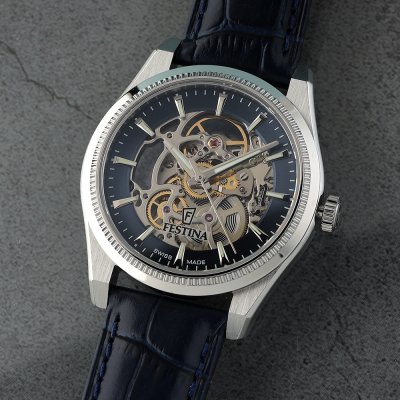 Cette montre Festina a un boîtier Inox 40 mm en diamètre et est équipée d'un bracelet cuir. Le boîtier contient un mouvement Soprod et la montre est dotée d'un cristal Saphire..