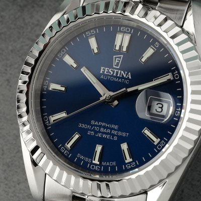 Cette montre Festina a un boîtier Inox 41 mm en diamètre et est équipée d'un bracelet Inox. Le boîtier contient un mouvement Soprod et la montre est dotée d'un cristal Saphire..