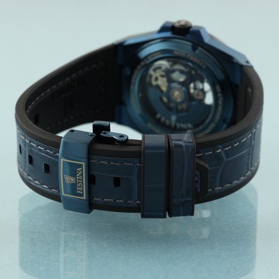 Cette montre Festina a un boîtier Inox 42 mm en diamètre et est équipée d'un bracelet cuir. Le boîtier contient un mouvement Soprod et la montre est dotée d'un cristal Saphire..