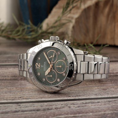 Cette montre Festina a un boîtier Inox 39 mm en diamètre et est équipée d'un bracelet Inox. Le boîtier contient un mouvement Miyota et la montre est dotée d'un cristal Minéral..