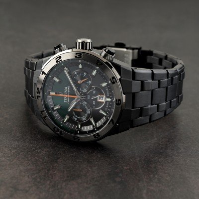 Cette montre Festina a un boîtier Inox 44.5 mm en diamètre et est équipée d'un bracelet Inox. Le boîtier contient un mouvement Miyota et la montre est dotée d'un cristal Minéral..