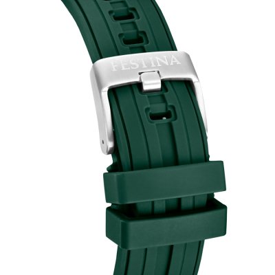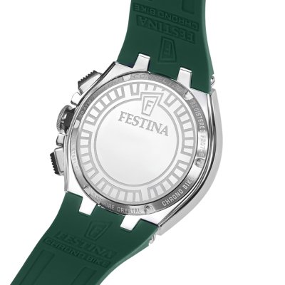 Cette montre Festina a un boîtier Inox 46 mm en diamètre et est équipée d'un bracelet caoutchouc. Le boîtier contient un mouvement Miyota et la montre est dotée d'un cristal Minéral..