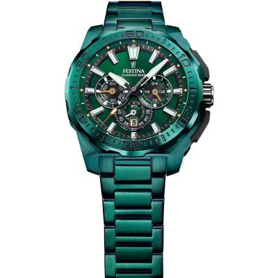 Cette montre Festina a un boîtier Inox 45.5 mm en diamètre et est équipée d'un bracelet Inox. Le boîtier contient un mouvement Miyota et la montre est dotée d'un cristal Minéral..