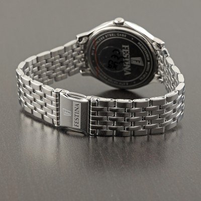 Cette montre Festina a un boîtier Inox 39 mm en diamètre et est équipée d'un bracelet Inox. Le boîtier contient un mouvement Miyota et la montre est dotée d'un cristal Minéral..