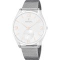 Ce bracelet de montre Festinaest fait de acier inoxydable et est attaché à la montre au moyen de Épingles à ressort. Le bracelet a une taille de 20 mm et se ferme au moyen d'un fermoir milanais. Le bracelet n'a pas de support droit, ce qui signifie que ce bracelet convient uniquement aux montres énumérées ci-dessous.