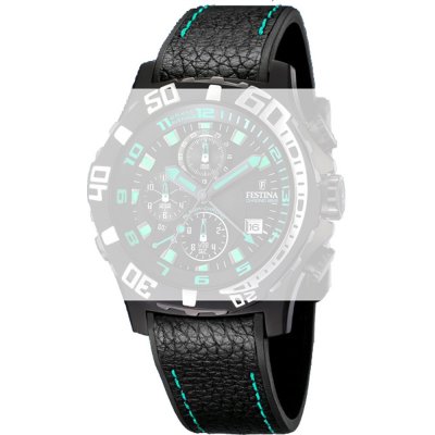Ce bracelet de montre Festinaest fait de cuir et est attaché à la montre au moyen de Épingles à ressort. Le bracelet a une taille de 22 mm et se ferme au moyen d'un boucle. Le bracelet n'a pas de support droit, ce qui signifie que ce bracelet convient uniquement aux montres énumérées ci-dessous.