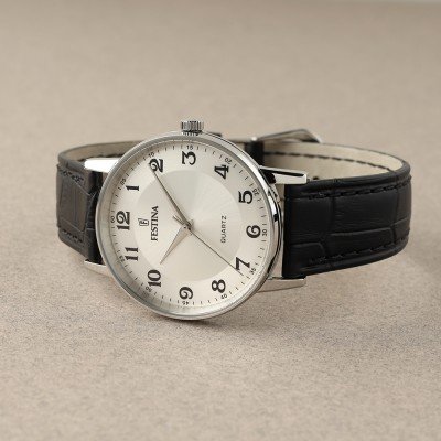 Cette montre Festina a un boîtier Inox 36 mm en diamètre et est équipée d'un bracelet cuir. Le boîtier contient un mouvement Miyota et la montre est dotée d'un cristal Minéral..
