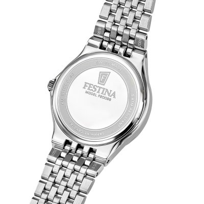 Cette montre Festina a un boîtier Inox 29 mm en diamètre et est équipée d'un bracelet Inox. Le boîtier contient un mouvement Ronda et la montre est dotée d'un cristal Saphire..