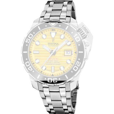 Ce bracelet de montre Festinaest fait de acier inoxydable et est attaché à la montre au moyen de Épingles à ressort. Le bracelet a une taille de 23 mm et se ferme au moyen d'un boucle déployante avec boutons poussoirs. Le bracelet n'a pas de support droit, ce qui signifie que ce bracelet convient uniquement aux montres énumérées ci-dessous.