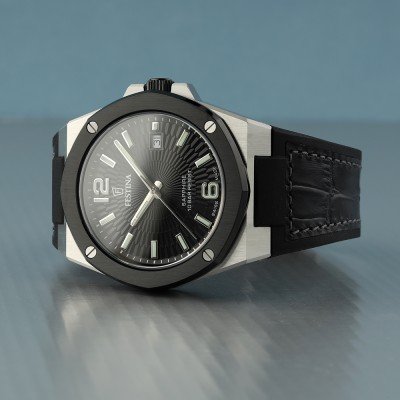 Cette montre Festina a un boîtier Inox 42 mm en diamètre et est équipée d'un bracelet caoutchouc. Le boîtier contient un mouvement Ronda et la montre est dotée d'un cristal Saphire..
