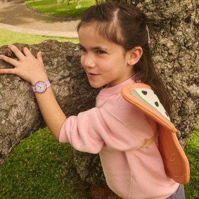 Cette montre Flik Flak a un boîtier Plastique biosourcé 30 mm en diamètre et est équipée d'un bracelet Textile. Le boîtier contient un mouvement ETA et la montre est dotée d'un cristal Acrylique..