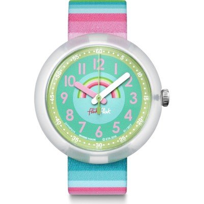 Cette montre Flik Flak a un boîtier Résine 30 mm en diamètre et est équipée d'un bracelet Textile. Le boîtier contient un mouvement ETA et la montre est dotée d'un cristal Acrylique..