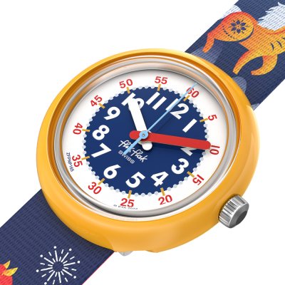 Cette montre Flik Flak a un boîtier Plastique biosourcé 30 mm en diamètre et est équipée d'un bracelet Textile. Le boîtier contient un mouvement ETA et la montre est dotée d'un cristal Acrylique..