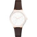 Ce bracelet de montre Fossilest fait de cuir et est attaché à la montre au moyen de goupilles en acier. Le bracelet a une taille de 18 mm et se ferme au moyen d'un boucle. Le bracelet n'a pas de support droit, ce qui signifie que ce bracelet convient uniquement aux montres énumérées ci-dessous.