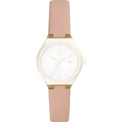 Ce bracelet de montre Fossilest fait de cuir et est attaché à la montre au moyen de goupilles en acier. Le bracelet a une taille de 15 mm et se ferme au moyen d'un boucle. Le bracelet n'a pas de support droit, ce qui signifie que ce bracelet convient uniquement aux montres énumérées ci-dessous.