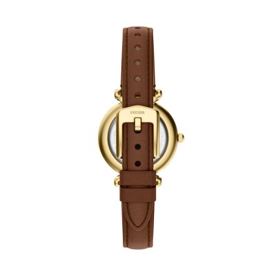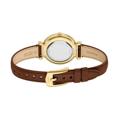 Cette montre Fossil a un boîtier Inox 28 mm en diamètre et est équipée d'un bracelet cuir. Le boîtier contient un mouvement Seiko Instruments Inc. et la montre est dotée d'un cristal Minéral..