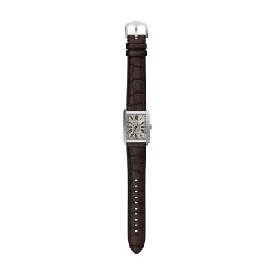 Cette montre Fossil a un boîtier Inox 30 mm en diamètre et est équipée d'un bracelet cuir. Le boîtier contient un mouvement Miyota et la montre est dotée d'un cristal Minéral..