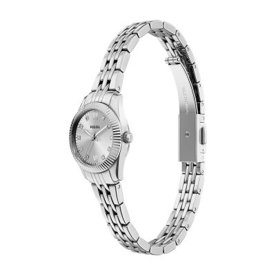 Cette montre Fossil a un boîtier Inox 20 mm en diamètre et est équipée d'un bracelet Inox. Le boîtier contient un mouvement Seiko Instruments Inc. et la montre est dotée d'un cristal Minéral..