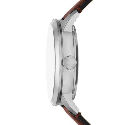 Cette montre Fossil a un boîtier Inox 44 mm en diamètre et est équipée d'un bracelet cuir. Le boîtier contient un mouvement Seagull et la montre est dotée d'un cristal Minéral..